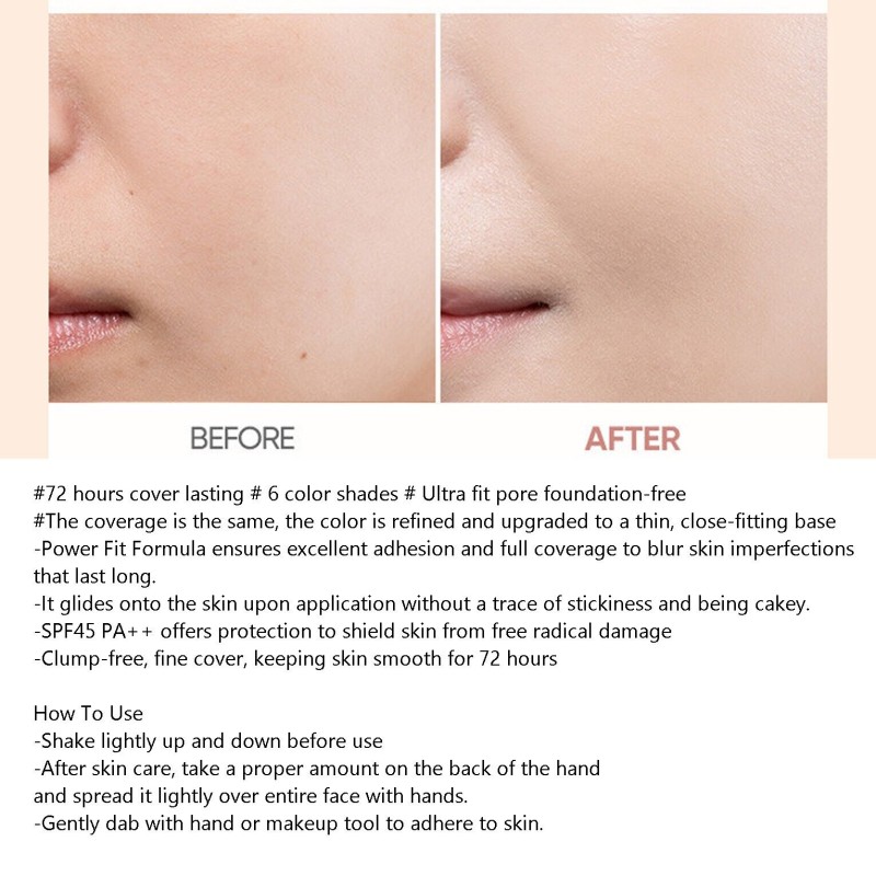 -Power Fit Formula ensures excellent adhesion and full coverage to blur skin imperfections that last long.